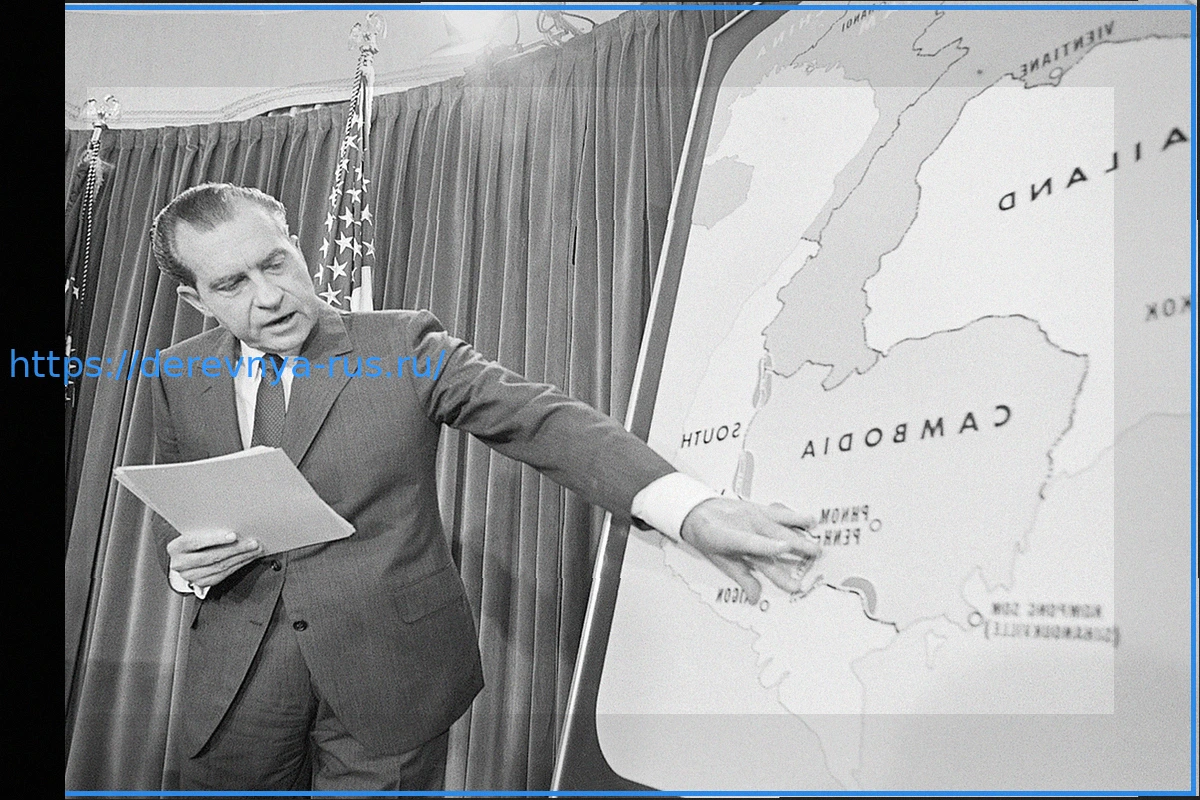 Никсон также проводил бомбардировки в Камбодже, которые начались в 1969 году и продолжались после отмены резолюции о Тонкинском заливе. Операция — по нарушению маршрутов снабжения по тропе Хо Ши Мина и для поражения предполагаемых коммунистических центров — началась тайно, без информирования Конгресса.