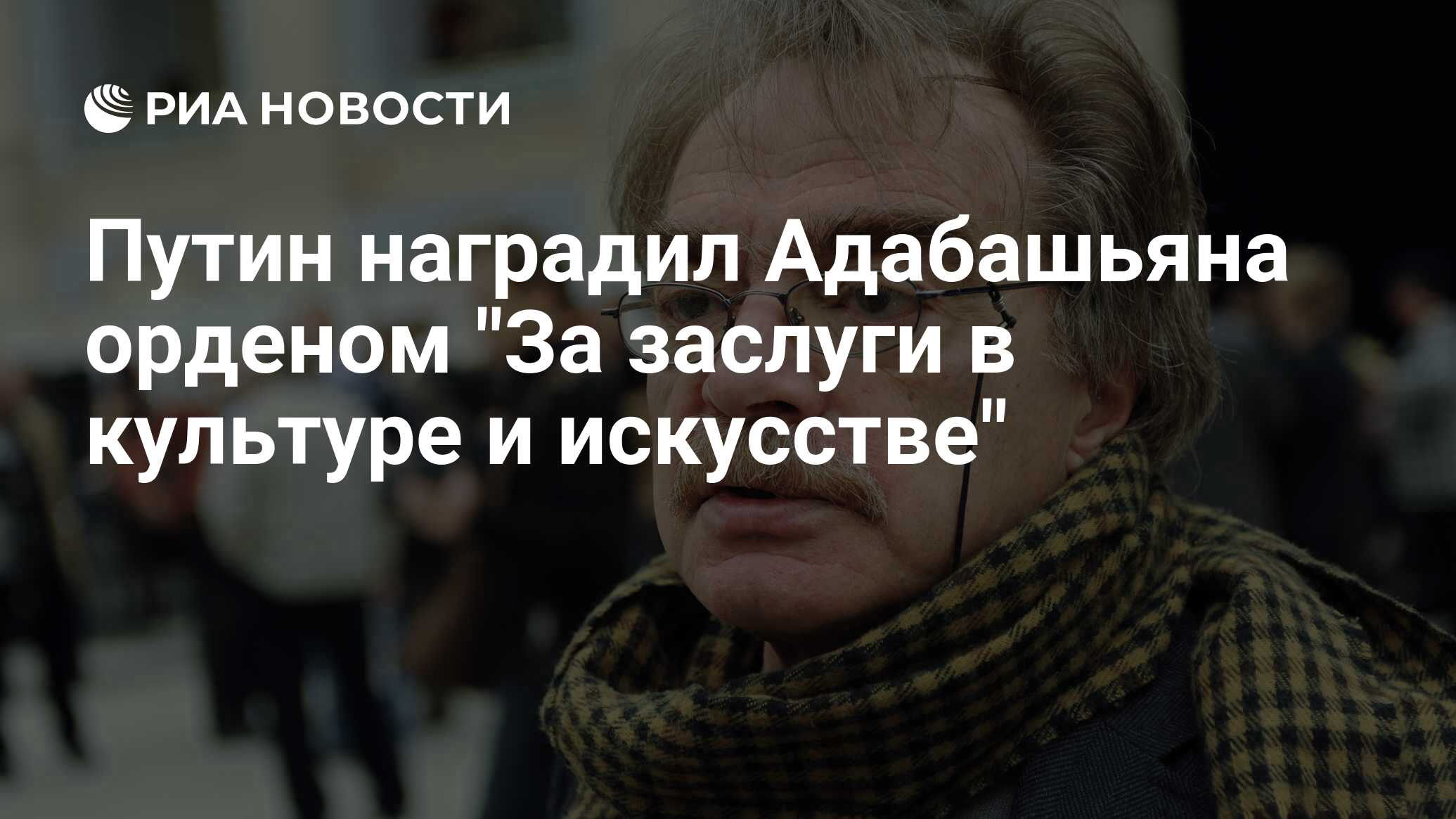 В Москве Президент России Владимир Путин присвоил орден «За заслуги в культуре и искусстве» известному кинодраматургу и заслуженному деятелю искусств РФ Александру Адабашьяну. Соответствующий указ был официально опубликован на портале правовых актов 31 июля 2025 года.