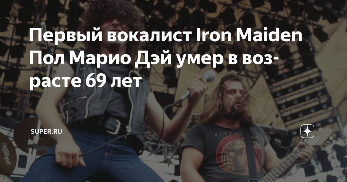 На 70-м году жизни скончался Пол Марио Дэй, первый солист культовой британской хэви-метал группы Iron Maiden. Об этом стало известно из сообщения газеты Daily Mail, которая ссылается на заявление группы More, где Дэй выступал после ухода из Iron Maiden.