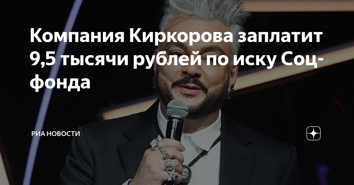 Арбитражный суд Москвы вынес решение о взыскании 9,5 тысячи рублей с компании ООО «Филипп Киркоров Корпорейшн», принадлежащей известному российскому певцу Филиппу Киркорову. Исковые требования были выдвинуты Социальным фондом Российской Федерации в связи с несоблюдением установленных сроков предоставления обязательных сведений, необходимых для индивидуального учета.